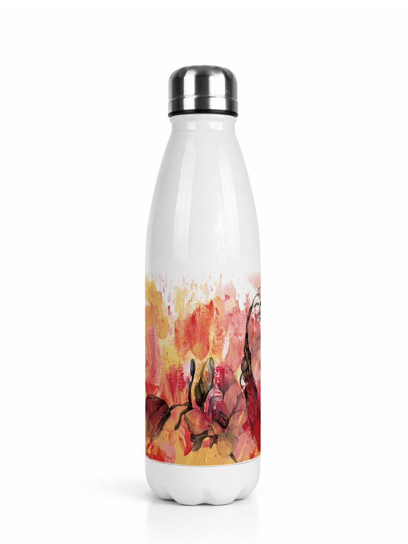 Botella térmica de acero inoxidable (500 ml) con diseño artístico exclusivo, apta para consumo alimentario. Conserva las bebidas frías durante 8 horas y calientes durante 6 horas. Ligera, sin condensación y diseñada para acompañarte en el día a día.